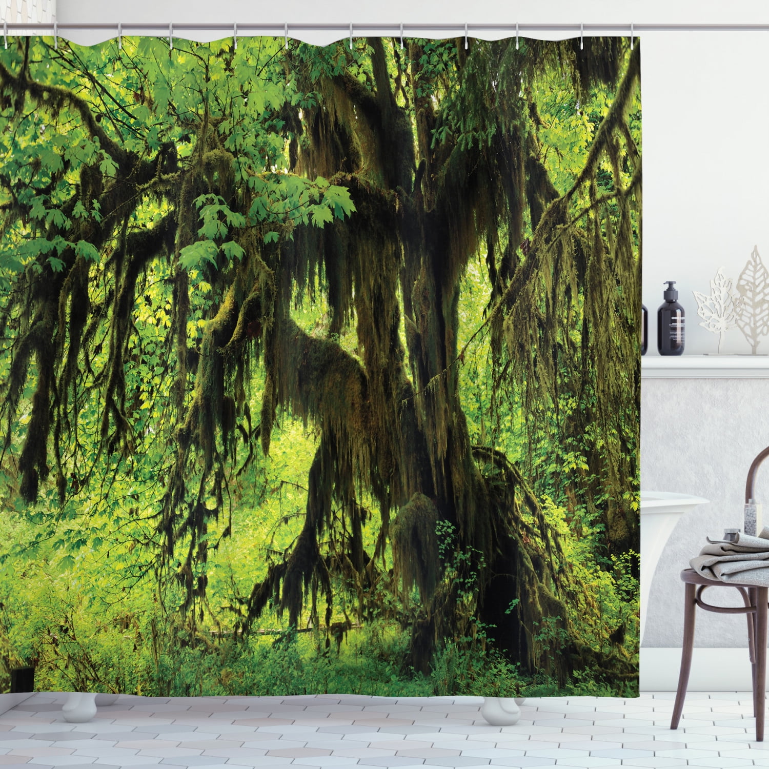 Rainforest Decorations Tree With Moss In The Jungle Natural Life Zen Home Decor Silent Plants Pattern Bathroom Accessories 69w X 84l Inches Extra Long By Ambesonne Walmart Com
