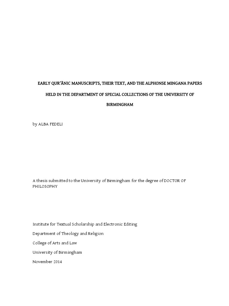 Fedeli15phd Pdf Pdf Manuscript Quran